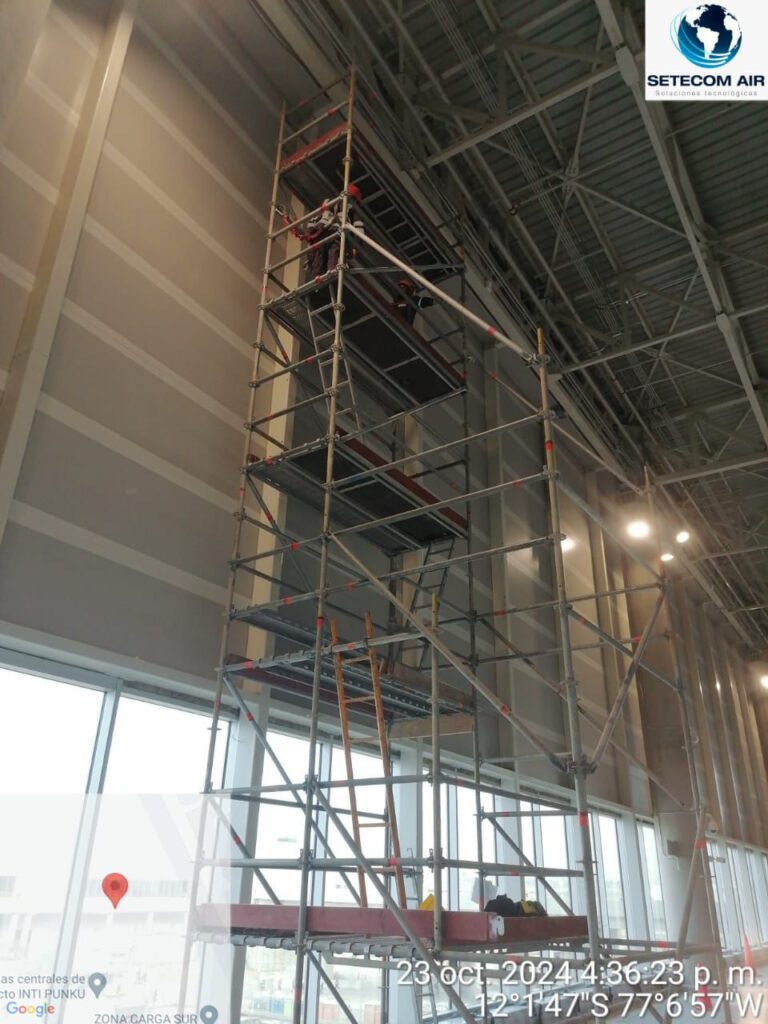 Proveímos el servicio de alquiler de andamios certificados para la empresa ITALTEL, en el marco de las obras del Nuevo Aeropuerto Jorge Chávez.